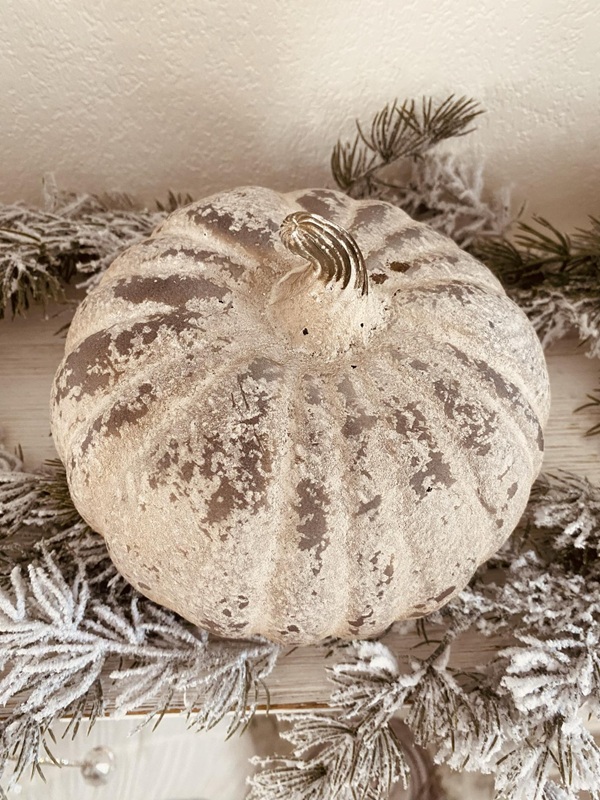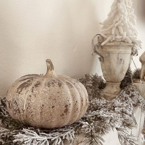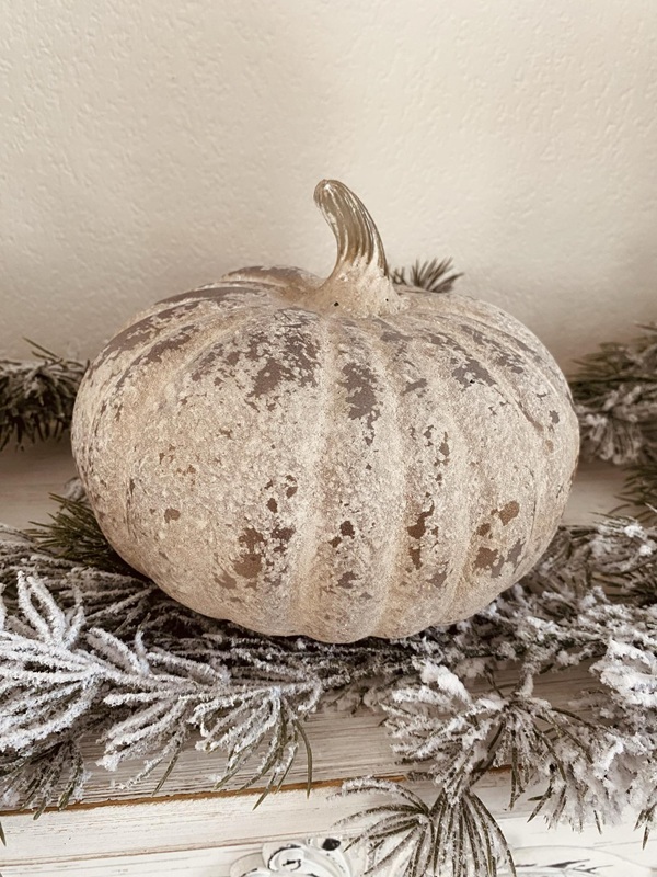 Sublimez votre déco automnale ou hivernale avec cette citrouille en verre blanc poudré, au fini délicatement vieilli.
