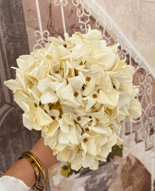 Cette tige d’hortensia crème en tissu apporte une touche de douceur et d’élégance à votre décoration. Ses fleurs délicatement travaillées et sa teinte crème subtile offrent un rendu naturel et raffiné, idéal pour créer des compositions florales harmonieuses.