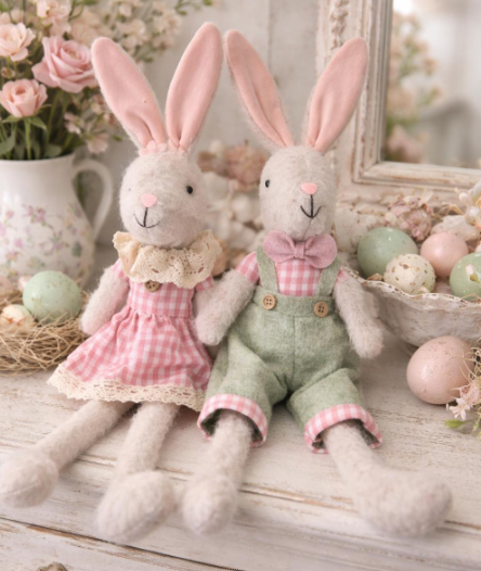 Craquez pour Duo de Tendresse, de charmantes peluches lapins de 40 cm, disponibles en version fille et garçon, à adopter ensemble ou séparément. Douces et réconfortantes, elles séduisent par leur allure délicate et leur présence attendrissante.