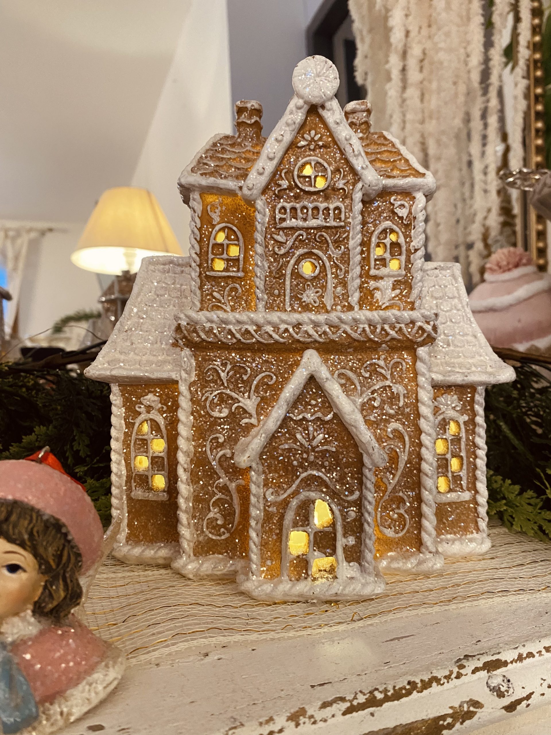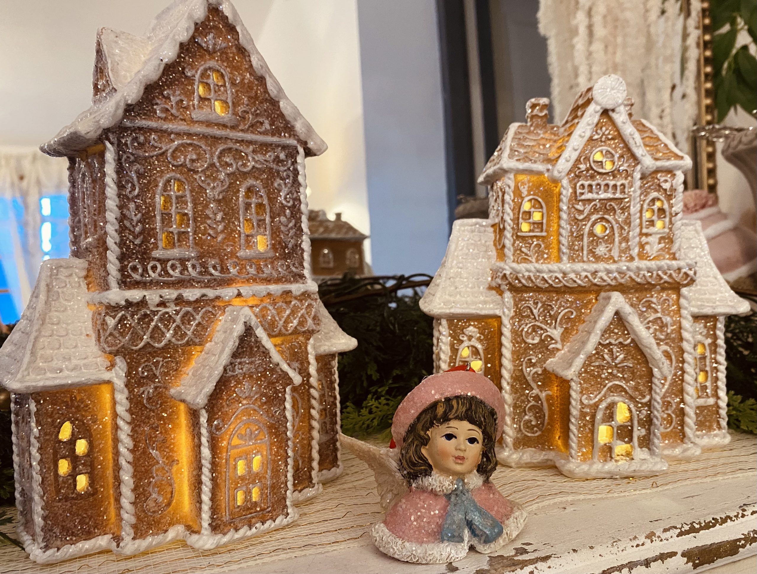Idéale à poser sur une table, une console ou dans un village de Noël, cette maison devient rapidement un élément central et charmant de votre ambiance festive. Les détails soigneusement réalisés rappellent l’univers des douceurs de Noël, invitant à la magie et à la féerie des fêtes.