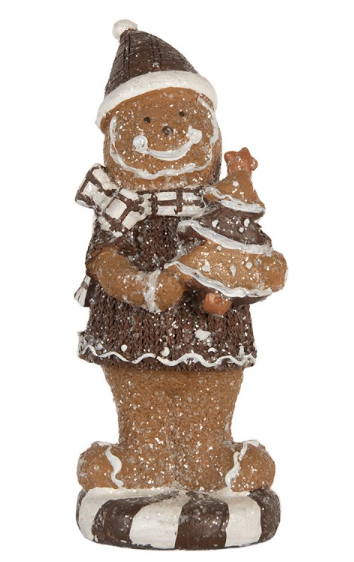 Cette adorable figurine pain d’épice tenant un sapin apporte immédiatement une touche de douceur et de gourmandise à votre décoration de Noël. Inspirée de l’univers des célèbres biscuits de fête, elle présente de jolis détails sculptés et peints qui lui donnent un charme irrésistible.