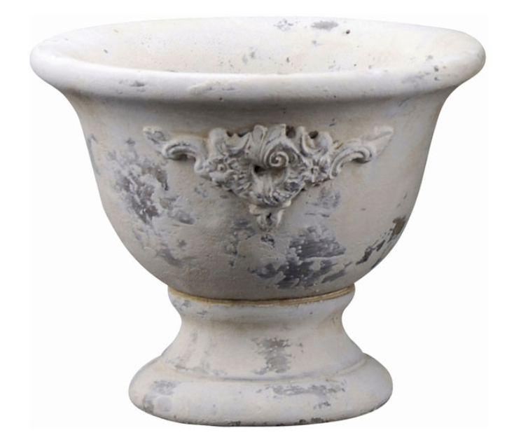 Ce pot Médicis en ciment blanc sur pied séduit par son style classique et intemporel. Sa finition patinée lui confère un aspect authentique et légèrement vieilli, tandis que son ornement central finement sculpté apporte élégance et caractère.