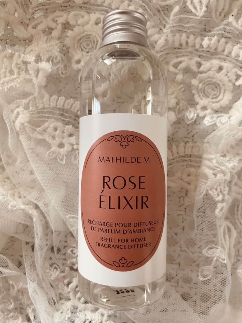 Découvrez Rose Élixir, un parfum voluptueux et envoûtant, mariage de la rose, reine des fleurs, et des notes poudrées de la violette, sur un lit de muscs blancs.